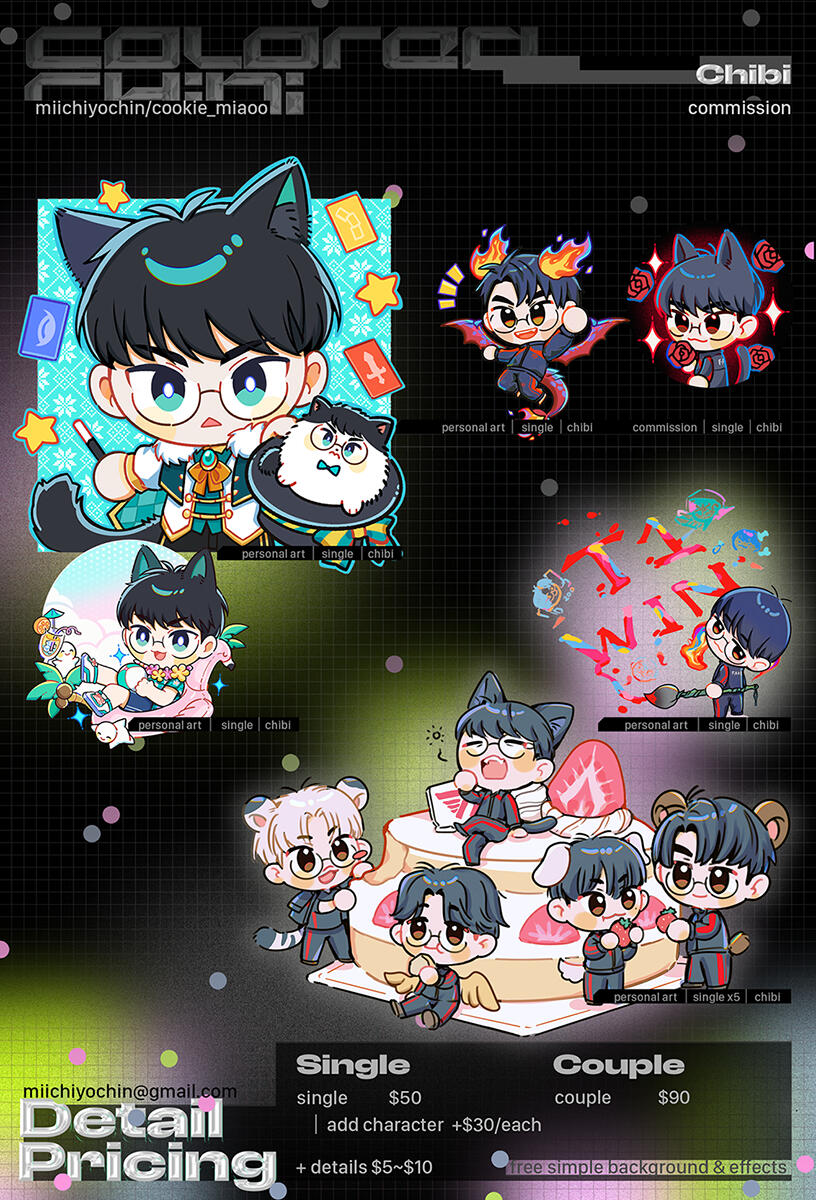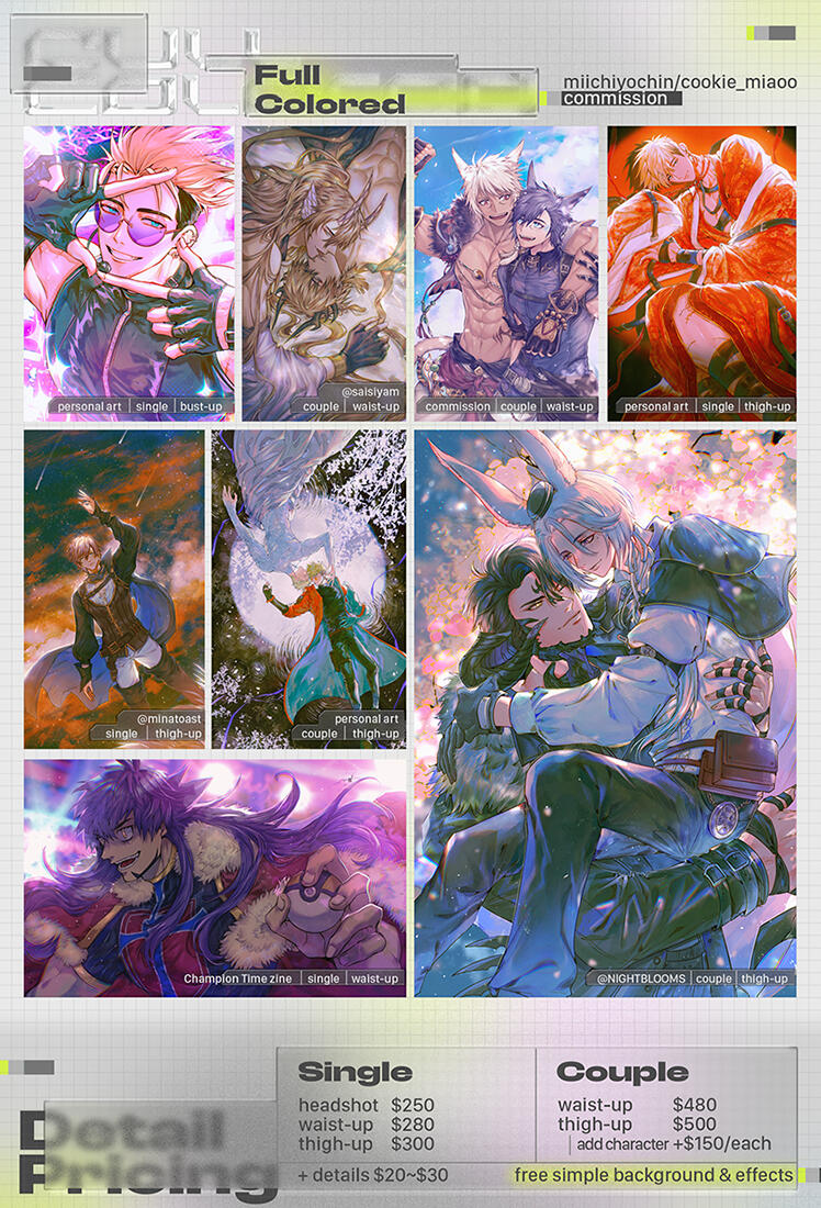 Please disscuss with me first if you need to set a publish date.Private Commissions: Disscussion.5. Artist's Right to Refusal and DiscretionThe Artist, miichiyochin, reserves the absolute right to reject any commission request for any reason without explanation.Should the Artist determine that they cannot complete the requested work to a satisfactory professional standard, the commission will be promptly declined.6. Refund and Cancellation PolicyRefund Eligibility: Refunds are issued exclusively during the commission process and are not available after the completed artwork has been delivered.Full Refund Cut-Off: A request for a full refund is only eligible before the project status is marked as "Coloring" in the production queue. Once the "Coloring" tag is applied, the commission is considered in its final stages and is no longer eligible for a full refund.7. Prohibited Actions by the ClientThe Client is strictly prohibited from engaging in the following actions with the purchased artwork:Tracing, Editing, or Altering the artwork without prior written consent.Reposting or Selling the artwork outside of the terms agreed upon.Rendering the artwork in any manner not explicitly discussed during the commission process.Removing or Obscuring the Artist’s watermark or credit.8. Exclusion of NFT/Blockchain TechnologyIt is explicitly states that I, the Artist have no interest in, association with, or endorsement of Non-Fungible Tokens (NFTs), blockchain-related technology, cryptocurrency, AI-generated projects, or future related inventions. The Client is strictly prohibited from utilizing the commissioned artwork for any of these purposes.9. Intellectual Property and RightsArtist Rights: The Artist, miichiyochin, maintains all rights to the intellectual property of the original artwork created for the commission.Client/IP Rights: The Artist does not maintain the rights to any character owned by the Client or derived from established intellectual properties (IPs). Characters and relevant concepts used in fanwork belong to their respective owners. All other rights are reserved by the Artist.