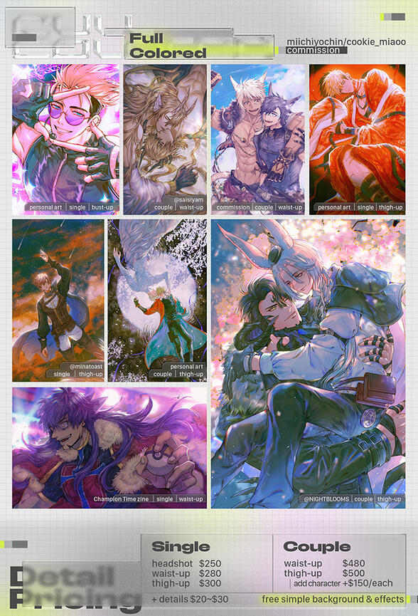 reserved slot can't be canceled in any circumstances• commissions are strictly prohibited from using as an NFT or crypto-related, AI-training or anything AI related.• commissions are used for personal purposes only. If the artwork is gonna be commercial, there will be a discussion on this.